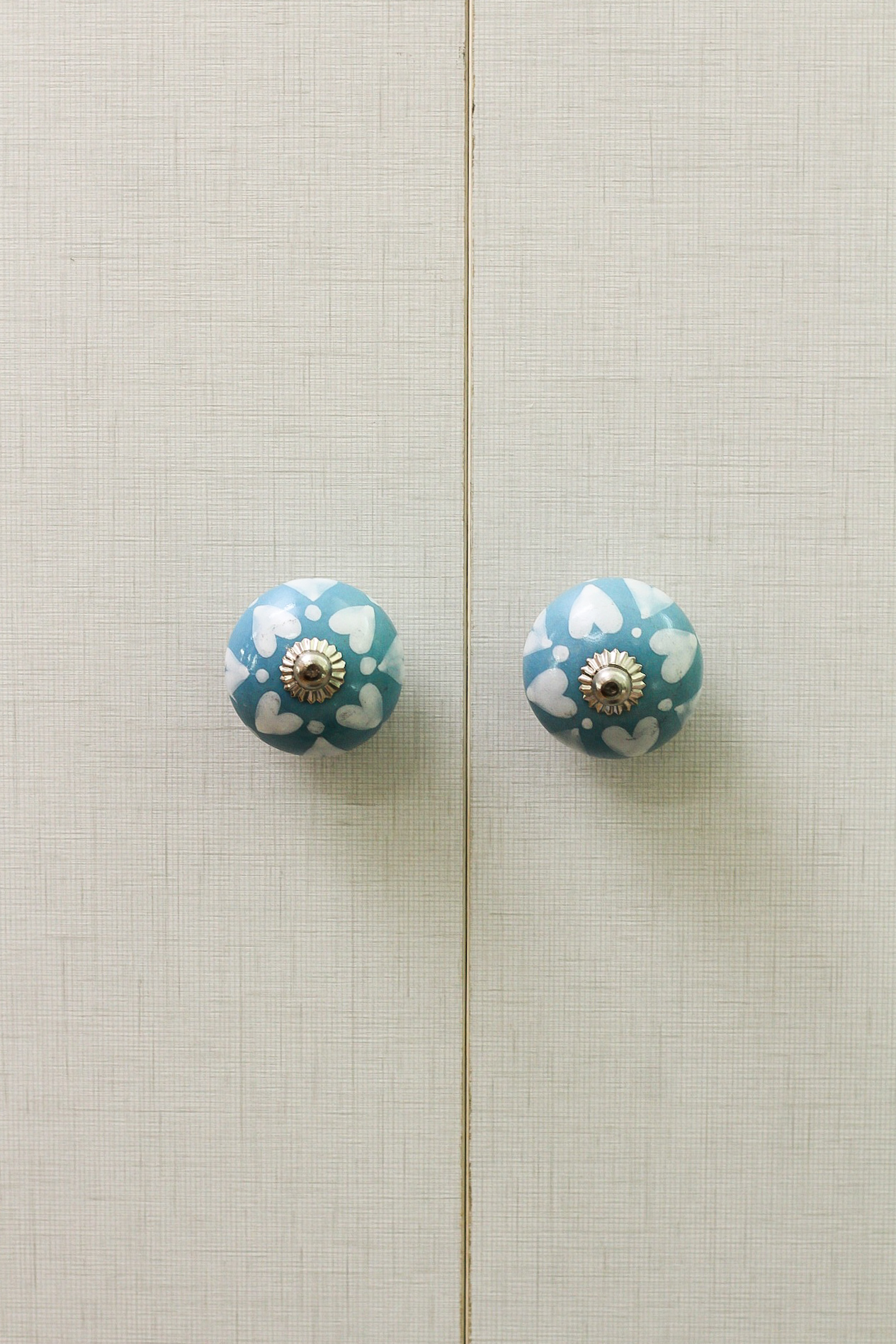 Cor: Porcelana azul claro com coração branco e ferragem cromada