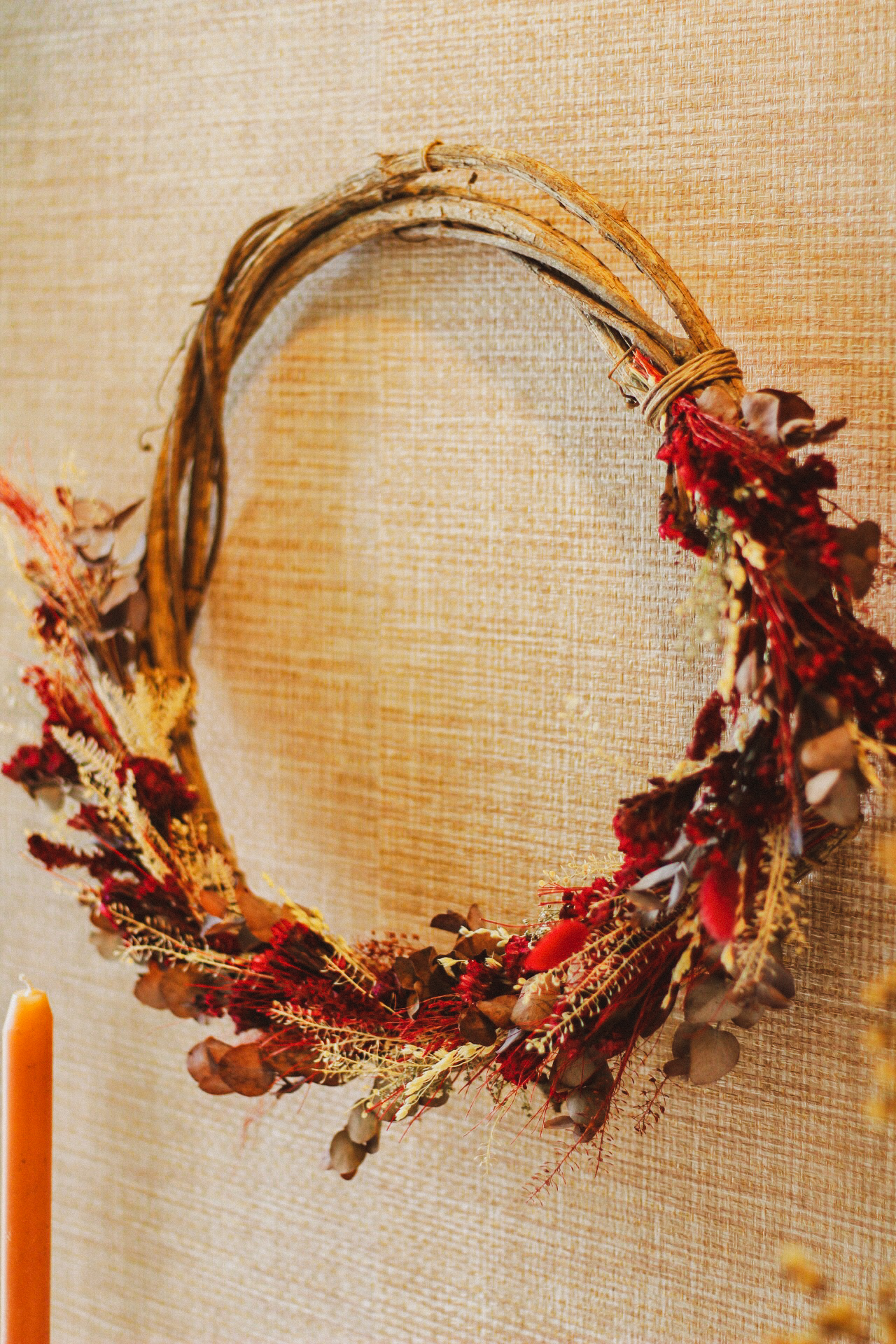 Feita à mão, cada detalhe foi cuidadosamente disposto para transmitir aconchego e elegância, tornando-a perfeita para decorar portas, paredes com um toque natural e acolhedor.